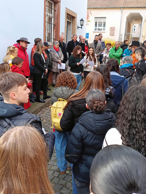 Am 13. November wurden 14 neue Stolpersteine in der Ottweiler Altstadt verlegt, für die Familien Pabst, Weirich, Fauß und Schloßer. Daran beteiligten wir uns als Schulgemeinschaft des Gymnasiums Ottweiler, indem Mitglieder der Schülervertretung und der AG Bunt und vielfältig Kurzbiographien zu den Familien verfassten, die dann vor den jeweiligen ehemaligen Wohnhäusern der Familien in der Stadt verlesen wurden.