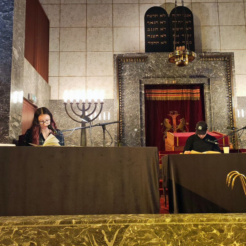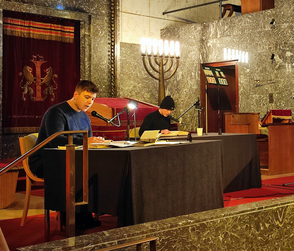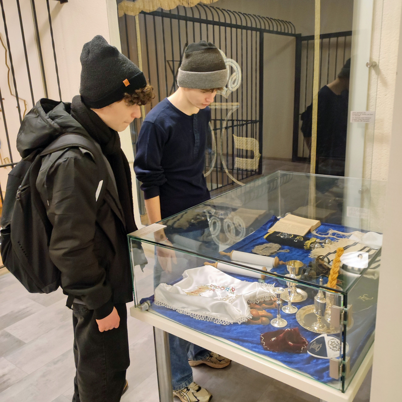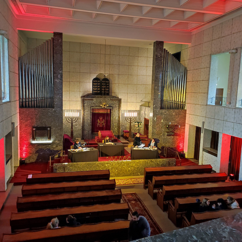 Dieses Jahr fand die Veranstaltung erneut in der neuen Synagoge in Saarbrücken statt, einem besonderen Ort jüdischen Lebens und Erinnerns, der auch bei den zwölf Schülerinnen und Schülern unserer Schule einen bleibenden Eindruck hinterließ. Zu Beginn erhielt unsere Gruppe durch den Mitorganisator von der CJAS, Herrn Patrick Wilhelmy, eine sehr gute Einführung in die Örtlichkeit der neuen Synagoge sowie in die Bedeutung und den Ablauf der Gedenkveranstaltung. Dieses Jahr war auch die Frauentribüne im Gebetssaal der Synagoge für alle Besucher und Teilnehmer geöffnet, was einen besonderen Blick auf die Veranstaltung ermöglichte.