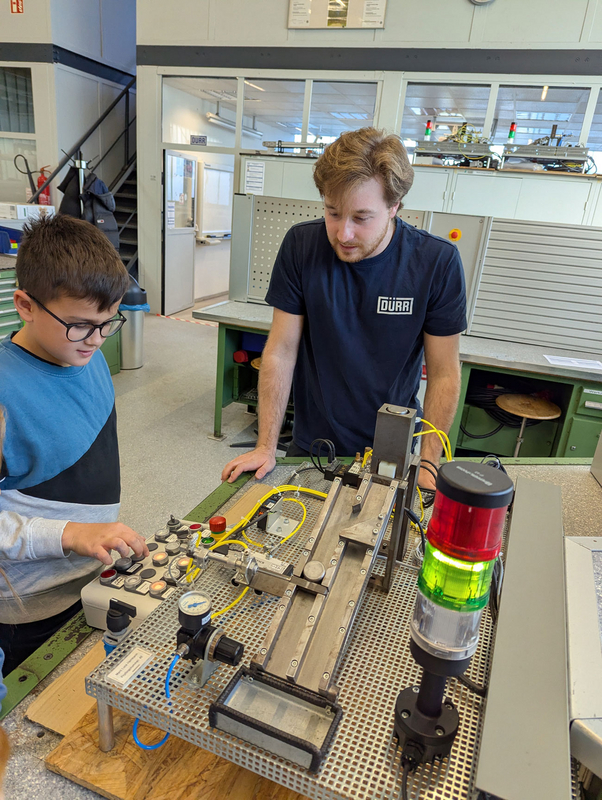 Die Firma Dürr zeigte sich beeindruckt von der großen Neugier und den klugen Fragen der jungen Besucher. Und auch die jungen Besucher waren beeindruckt, so viel Technik live und zum Anfassen zu erleben.