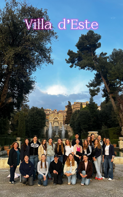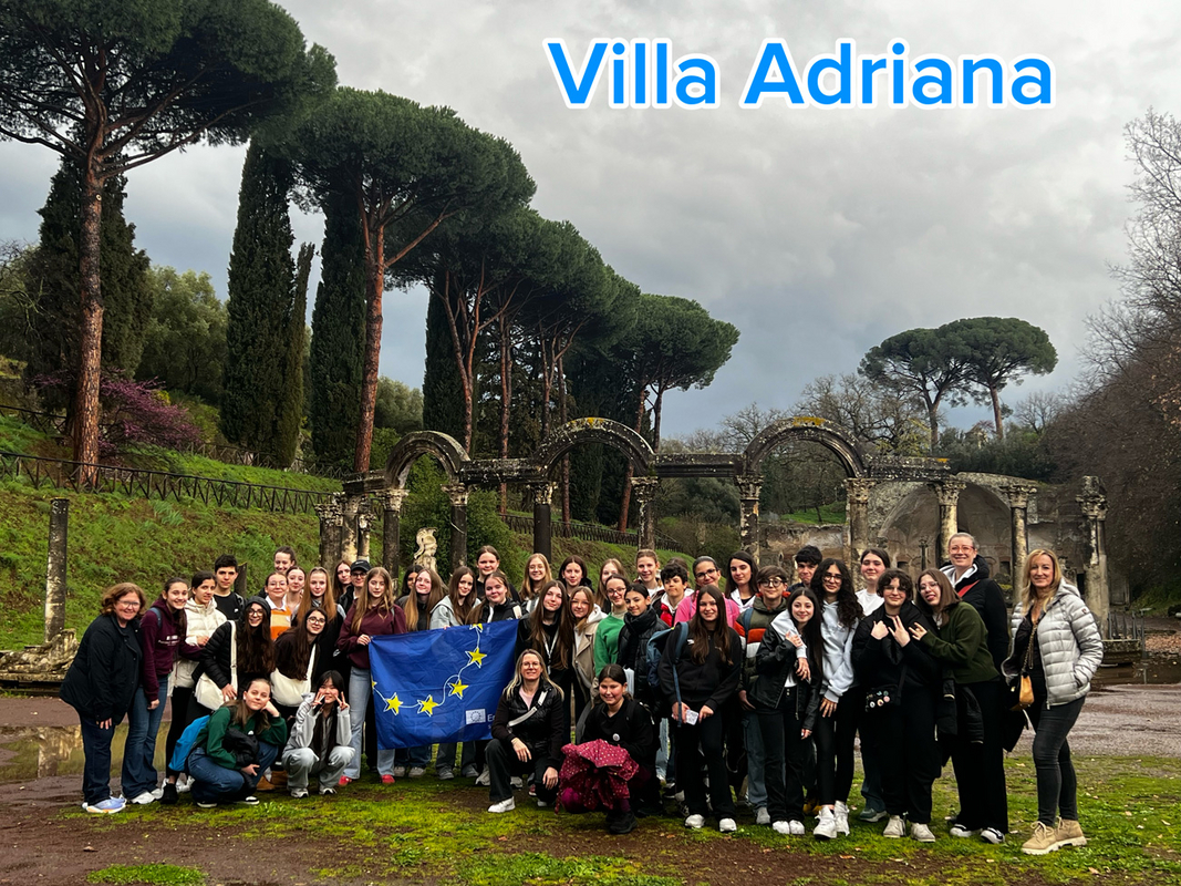 Der Empfang an der Partnerschule in Tivoli war herzlich: In der Aula Magna stellten die italienischen Gastgeber Kaiser Hadrian und seine prachtvolle Villa vor. Danach sorgten Kennenlernspiele und ein sprachübergreifender Workshop dafür, dass alle schnell miteinander ins Gespräch kamen. Auch Unterrichtsbesuche und ein Ausflug zur berühmten Villa d’Este boten spannende Einblicke in den italienischen Schul- und Kulturalltag.