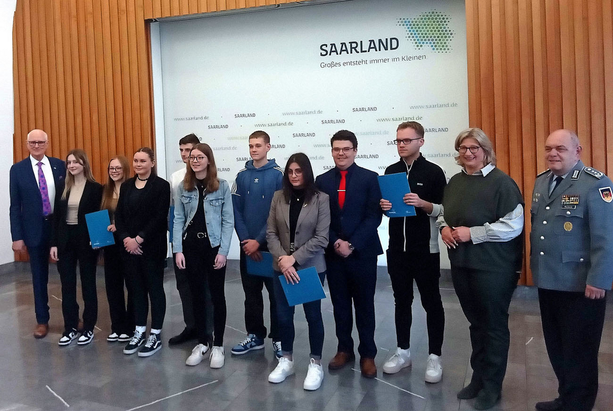 Stellvertretend für das Gymnasium Ottweiler nahmen Celine Brill, Coralie Schmitt, Fabio Braun, Maximilian Dell und Yannis Dillmann, alle aus der Klasse 10m1, aus der Hand der Ministerpräsidentin eine Urkunde als Zeichen der Anerkennung entgegen. Auch die Schulgemeinschaft des GO bedankt sich bei den oben Genannten ebenso wie bei Maximilian Bauer, Emily Böffel, Maximilian Hüther, Simon Kruse, Amelie May und Fabienne Omlor für Ihr Engagement!